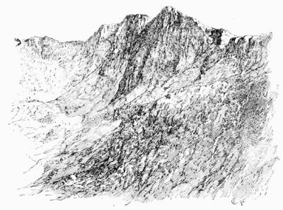 Cefnysgolion Duon—i.e. 'The Black Ladders,' by which name it is commonly known—might be forced into meaning 'The Black Schools,' and this sense greatly bewildered a learned native, who observes, 'It is impossible to imagine a spot less suited to the operations of the school-master.' But we can assure him that as a school for climbers it leaves little to be desired.