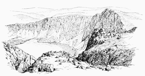 In the history of Welsh mountaineering it holds a place, having long been the most usual starting-point for the ascent of Snowdon, and all the early travellers came here. Cradock (1770) calls it 'a small thatched hut at the foot of the mountain (Snowdon), near a lake which they call Llyn Cychwhechlyn (i.e. Quellyn), which I leave you to pronounce as well as you are able. We procured a number of blooming country girls to divert us with their music and dancing.' Even these delights, however, could not keep travellers from drifting away towards Beddgelert—a change which, as readers of Wild Wales will remember, had already become marked when Borrow had his interview with the Snowdon guide forty years ago. The early accounts often speak of this place as Bronyfedw (a name which still survives), and for many years there used to be a kind of 'personally conducted' (Hamer's) ascent of Snowdon from Carnarvon once a week by this route.