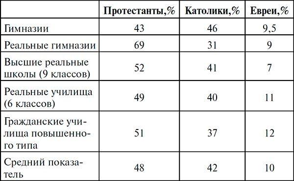 См. цифры, приведенные в предыдущем примечании: они свидетельствуют о том, что процент католиков в средней школе, который вообще на 1/3 ниже их процентного отношения ко всему населению, поднимается несколько выше лишь в гимназиях (главным образом благодаря тому, что гимназии дают необходимую подготовку для богословских занятий). В качестве характерного явления, иллюстрирующего дальнейшее изложение, следует подчеркнуть, что в Венгрии типичное процентное отношение протестантов к общему числу учащихся средних учебных заведений выражено еще более резко (см.: Offenbacher М. Op. cit., S. 19, Anm.).