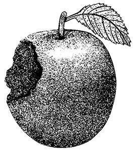 «О, это яблоко! Вкусное, наверное! Его держит какая-то подозрительная старуха, ну да ладно, я так давно не ела яблок! Хрум-хрум».