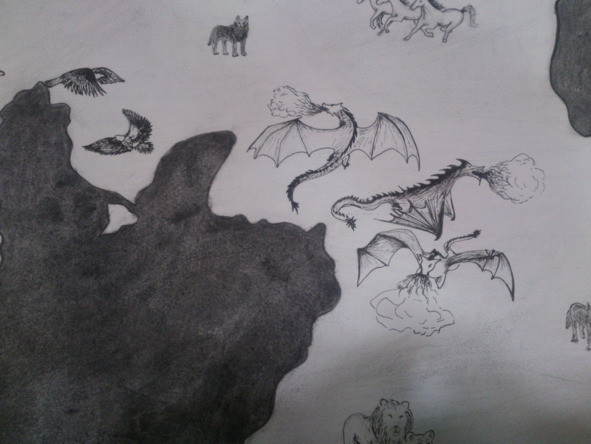 Волчья стая оставила поле битвы последней, прежде измотав одного драконов (а число их было три). Истратив весь свой пыл, тот дракон рухнул наземь и остался умирать, когда двое других пустились в погоню за волками.