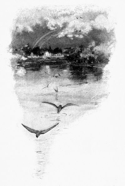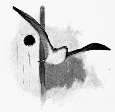The nozle-hole of the one-time pump stares hard at my study window like the empty socket of a Cyclops. There is a small bird-house nailed just above the window, which gazes back with its single eye at the staring pump. For some time one April the sputtering sparrows held this box above the window against the attacks of two tree-swallows. The sparrows had been on the ground all winter, and had staked their claim with a nest that had already outgrown the house when the swallows arrived. In love of fair play, and remembering more than one winter day made alive and cheerful by the sparrows, I could not interfere and oust them, though it grieved me to lose the pretty pair of swallows as summer neighbors.