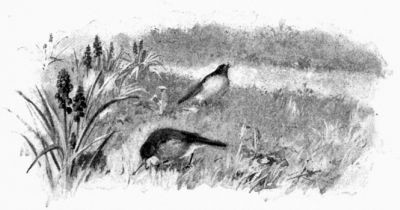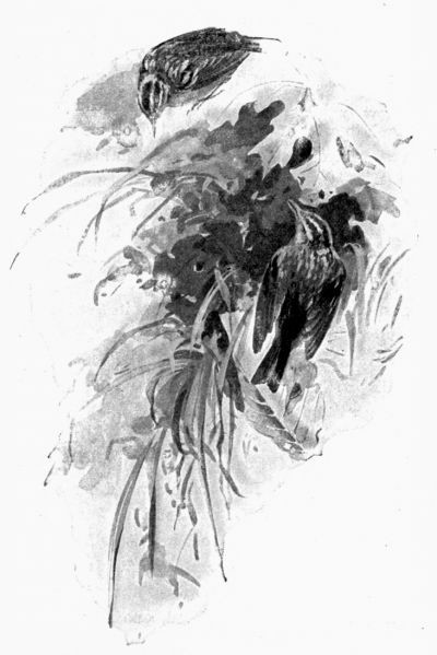 Again, the grass is often a dangerous bed. On the day before the great March blizzard of 1888, the larks were whistling merrily from the fences, with just a touch of spring in their call. At noon I noted no signs of storm, but by four o'clock—an hour earlier than usual—the larks had disappeared. They rose here and there from the grass as I crossed the fields, not as they do when feeding, far ahead of me, but close to my feet. They had gone to bed. By early evening the snow began to fall, and for two days continued furiously.