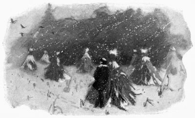 The storm grew fiercer; the wind roared through the big pines by the side of the house and swept hoarsely on across the fields; the pines shivered and groaned, and their long limbs scraped over the shingles above me as if feeling with frozen fingers for a way in; the windows rattled, the cracks and corners of the old farm-house shrieked, and a long, thin line of snow sifted in from beneath the window across the garret floor. I fancied these sounds of the storm were the voices of freezing birds, crying to be taken in from the cold. Once I thought I heard a thud against the window, a sound heavier than the rattle of the snow. Something seemed to be beating at the glass. It might be a bird. I got out of bed to look; but there was only the ghostly face of the snow pressed against the panes, half-way to the window's top. I imagined that I heard the thud again; but, while listening, fell asleep and dreamed that my window was frozen fast, and that all the birds in the world were knocking at it, trying to get in out of the night and storm.