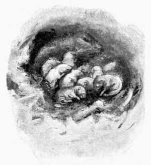 83In the tree next to the chebec's was a brood of robins. The crude nest was wedged carelessly into the lowest fork of the tree, so that the cats and roving boys could help themselves without trouble