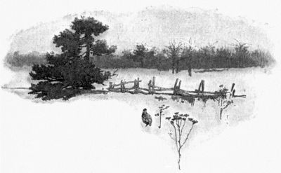 The cheerful little goldfinches, that bend the dried ragweeds and grass-stalks down and scatter their chaff over the snow, sleep in the thick cedars and pines. These warm, close-limbed evergreens I have found to be the lodging-houses of many of the smaller winter birds—the fox-colored sparrow, snowbird, crossbill, and sometimes of the chickadee, though he usually tucks his little black cap under his wing in a woodpecker's hole.