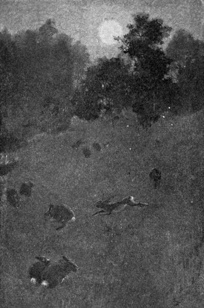 They are chasing each other over the grass in a game of tag. There go two, round and round, tagging and re-tagging, first one being "it" and then the other. Their circle widens all the time and draws nearer to the woods. This time round they will touch the bush behind which we are watching. Here they come—there they go; they will leap the log yonder. Flash! squeak! scurry! Not a rabbit in the field! Yes; one rabbit—the limp, lifeless one hanging over the neck of that fox trotting off yonder in the shadows, along the border of the woods!