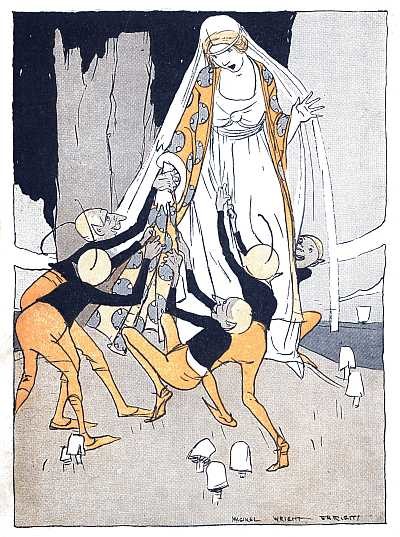 Acknowledgments are also due to the following publishers and authors for permission to use copyrighted material: to Charles Scribner's Sons for poems from Robert Louis Stevenson's "A Child's Garden of Verses" and Mrs. Mary Mapes Dodge's "Rhymes and Jingles"; to the Macmillan Company for poems from Christina Rossetti's "Sing Song"; to Little, Brown, and Company for poems from Mrs. Laura E. Richards's "In My Nursery"; to G. P. Putnam's Sons for the use of Sir George Webbe Dasent's version of the story "East of the Sun and West of the Moon," from "Popular Tales from the Norse," as the basis for our story of the same name; to the A. Flanagan Company and Miss Flora J. Cooke for the use of "The Rainbow Bridge," from Miss Cooke's "Nature Myths," in a similar way; to Miss Marion Florence Lansing for permission to adapt her dramatized Hindu Tale, "The Man's Boot," from "Quaint Old Stories," in our story "The Shoe"; to Mr. William Hawley Smith for permission to use his poem "A Child's Prayer."