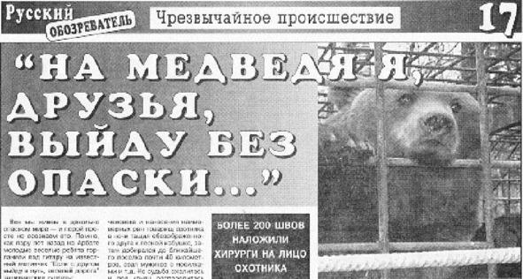 Медведь, друзья, это настолько серьезно, что не приведи Господи схватиться с ним, сойдясь, как принято говорить, «на узкой тропе».