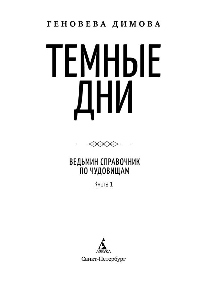 Ведьмин справочник по чудовищам. Кн. 1 : Темные дни : роман / Геновева Димова ; пер. с англ. В. Михайловой. — СПб. : Азбука, Азбука-Аттикус, 2024.