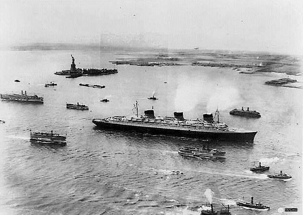 Прибытие легендарного французского лайнера «Нормандия» в Нью-Йорк. Начало ХХ века