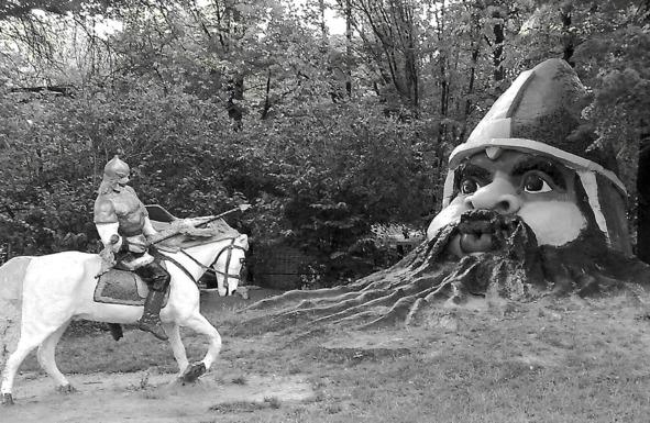 Детский парк в Симферополе. Руслан — скульптор Л. С. Смерчинский, Голова брата Черномора — скульптор В. И. Солощенко.