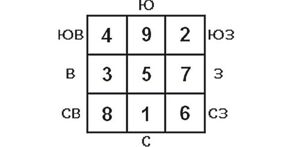 Во втором случае, мы накладываем на стол или комнату сетку багуа, а в первом случаи квадрат Ло шоу. Суть не меняется, и Вы можете смело использовать любой из методов. Значение цифр в квадрате ло шоу, Вы можете узнать, заглянув в таблицу 1.