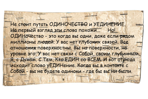 Однако в любой момент мы можем начать Путь возвращения к мудрости. Стоит лишь начать делать что-либо ОСОЗНАННО. Соединить действие тела с осознанием того, что приносят органы чувств и предложить уму не отвлекаться от этого. Расстройство — это разделение нашего (и вселенского) ТРИЕДИНСТВА (Сознание — Чувства — Тело) на три «самостоятельные» части. Когда тело, чувства и ум заняты каждый своими делами. Например — вы можете гулять по лесу и вовсе не замечать деревьев, запаха травы, теплого солнышка и ветерка. Ум ваш занят мыслями о прошлом, будущем, или о том, что находится очень далеко. Вы можете тратить время и силы на то, на что вы не можете оказать никакого воздействия. Например, на мировую политику, или прошлое. В этот момент, минуты, часы вы «не в себе», не в контакте с собой. Вы проходите мимо вашей действительной жизни.