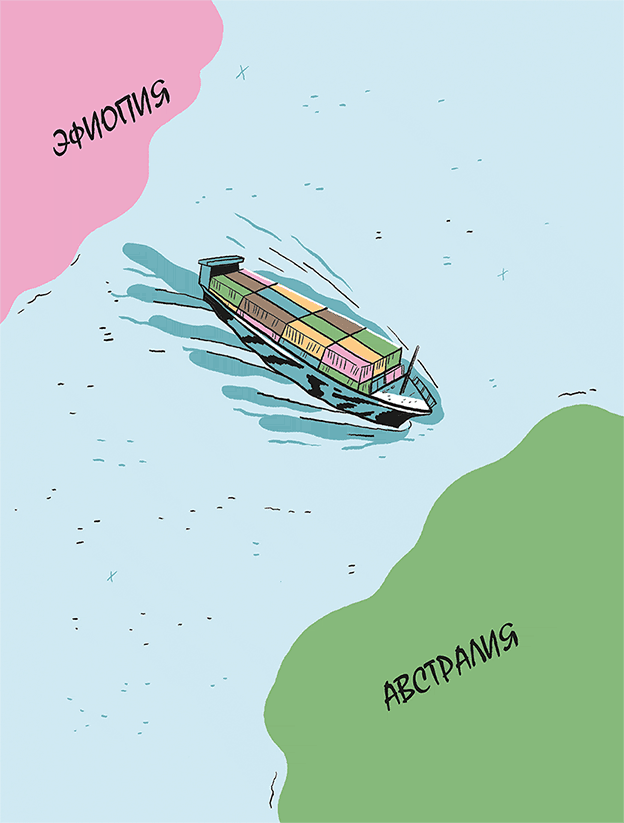 Зайдите в вашу любимую кофейню и посмотрите, какие виды кофе есть в наличии. Что-нибудь заметили? Эфиопия. Кения. Колумбия. Руанда. В чашке любой кофе имеет один и тот же вид – жидкость коричневого цвета. Но, мы уверяем, не все сорта кофе одинаковы. Поразительно, насколько на самом деле развита сеть поставок сельскохозяйственной продукции, которая делает возможным потребление кофе в XXI веке. Нет ничего особенного в том, что в крупных городах по всему миру пьют кофе – на месте происходит лишь процесс обжарки. Другие виды обработки осуществляются вдали, на фермах и хозяйствах, где кофе выращивают, аккуратно обрабатывают, а затем грузят на огромные торговые суда. На них кофе поступает в ближайший крупный порт, откуда отправляется на продажу в сыром «зеленом» виде для обжарки в местных кофейнях.