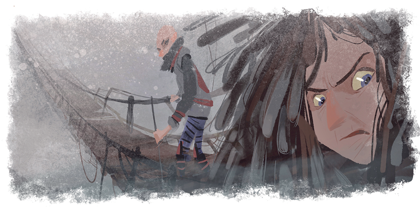 Решив не смотреть ни под ноги, ни на край Осколка впереди, Вика сосредоточила взгляд на своих руках, которые крепко держались за верёвочный поручень, и заставила себя сделать шаг. И у неё получилось. Ещё один шаг. И ещё один. Но Вика не спешила радоваться. Что такое один шаг, когда предстоит преодолеть целую бесконечность?