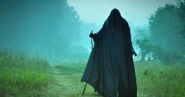 Стукнула щеколда и в избу ввалился путник. Обычный с виду человек — с котомкой за плечом, в длинном плаще с капюшоном, надвинутым так глубоко, что совсем не видно лица. Высокий, прямой, как жердь. Вроде не стар ещё, а с посохом. Правда, многие странники нынче с похожими палками ходят. Попросил хозяев о ночлеге.