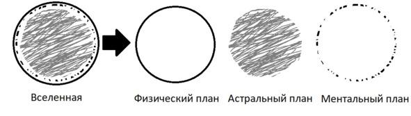 Человек состоит из тела, души и духа. Это триединство также проявляется и в составе мира, в котором тоже присутствуют 3 плана: физический (тело), астральный (душа) и ментальный (дух). Умирая, человек лишается лишь своего физического плана и переходит в астрально-ментальное состояние. Имея при этом возможность родиться вновь, обретя новое физическое тело.