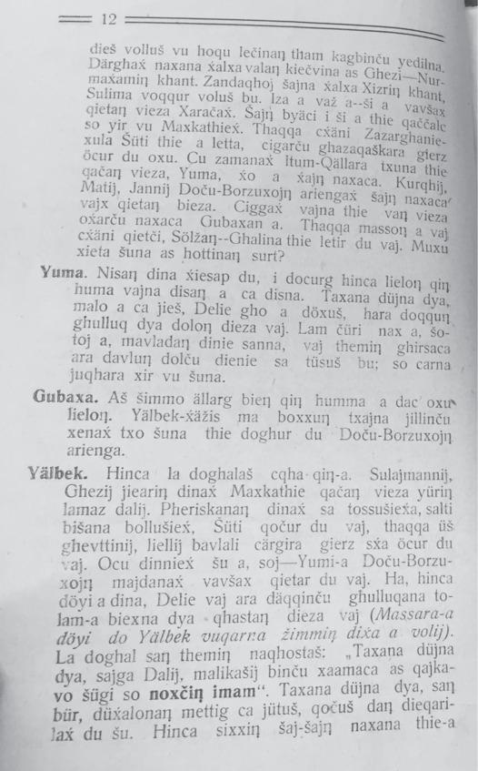ХIокху гуламна юккъехь 1922-чу шарахь Тучаев Ахьмас, Эльдарханов Таьштмара, Шоипов Ага-Мирзас (Акх-Марза — ГIойтIара дешна стаг) Iарбийн графикаца яздийна нохчийн жайнаш ду. Кхин дIа латинийн графикаца масех жайна, букварь, алфавит ю. Со тешна ву, хIокха гуламах вайн Iилман белхало- ша пайда оьцург хиларх.
