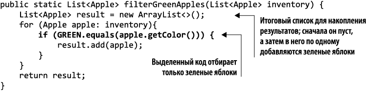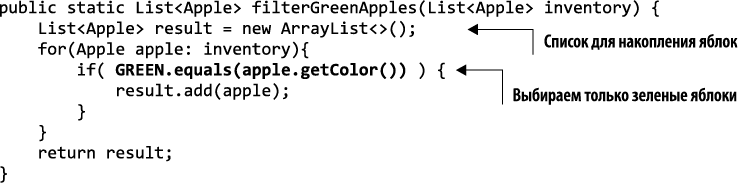 Листинг 2.1. Параметризация поведения: фильтрация яблок с помощью предикатов
