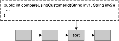 Вот это и есть параметризация поведения. Проведем аналогию: ваш сосед по комнате знает дорогу к супермаркету и обратно. Вы можете попросить его купить некоторые продукты: хлеб, сыр и вино, что эквивалентно вызову метода goAndBuy с передачей списка продуктов в качестве аргумента. Но в один прекрасный день вы, будучи еще в офисе, хотите попросить его выполнить нечто, что он никогда раньше не делал, — забрать посылку на почте. Вам нужно передать ему список указаний: пойти на почту, поговорить с менеджером, назвать номер почтового отправления и забрать посылку. Вы можете отправить ему список указаний, которым ему нужно будет следовать, по электронной почте. Это несколько сложнее, чем покупка продуктов, и эквивалентно передаче методу goAndDo нового варианта поведения в виде аргумента.