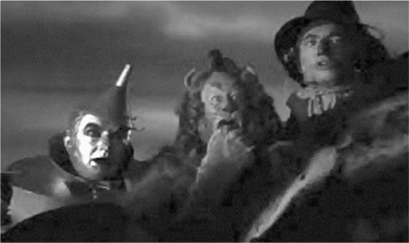 В «Волшебнике страны Оз», когда трое спутников Дороти планируют штурмовать замок Злой ведьмы, Трусливый лев говорит Железному дровосеку и Страшиле: