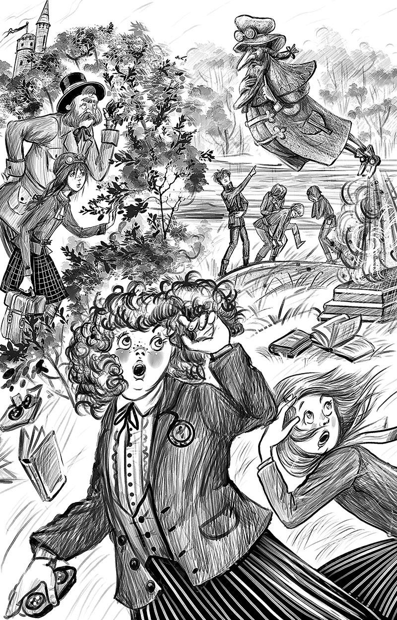 Библиотека походила на крепость с окнами-бойницами. На стены наползал мох, флюгер на черепичной крыше изображал алхимическую реторту[1]. Легко представить, какие потрясающие знания хранят запертые в библиотеке книги и до чего уютно будет изучать их при свете ламп под зелёным абажуром. В библиотеке можно больше разузнать о таинственном мастере Жакемаре и его Хронометре Судьбы.