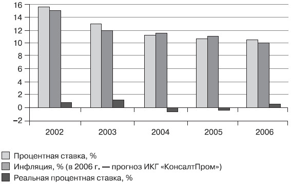 В настоящее время в России наблюдается понижение номинальных процентных ставок и сохранение реальных процентных ставок на низком уровне. Таким образом, складывающаяся ситуация способствует дальнейшему росту слияний и поглощений на отечественном рынке.