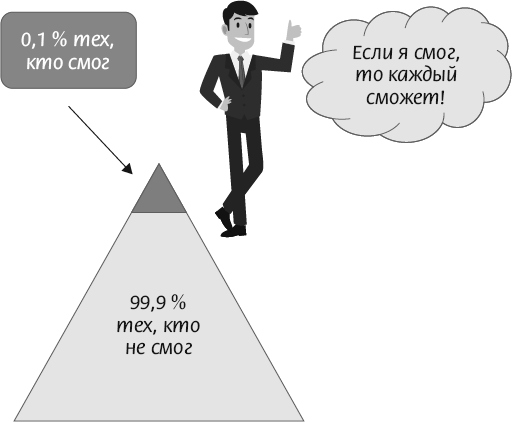Типичная модель обучения продавцов в софтверных компаниях — попытка подражать лучшим в стиле «Смог я — сможешь и ты! Делай как я» (рис. 1). Это типичная ошибка выжившего, которую с удовольствием описывают в многочисленных автобиографиях чемпионы, герои и баловни судьбы.