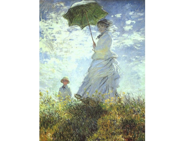 Вернемся к Клоду Моне. Посмотрите на его картину «Дама с зонтиком». Картина большая и висит в музее Дартс. Но какой бы большой она не была, картина все равно воспринимаются, как этюд. Когда мы говорим «картины», то подразумеваем какой-то момент драматургии, в котором что-то должно случиться, какое-то происшествие. А этюд есть этюд и картины импрессионистов не предполагают изображения никакого другого события, кроме события светового, потому что именно с картин Клода Моне в живописи появляется новый герой. И он занимает собой все пространство. Этим героем становятся солнечный свет.