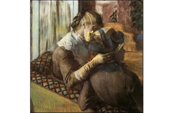 Дега один из тех немногих художников, как, к примеру Клод Моне, смотреть которого можно часами. Когда вы стоите перед его работами и рассматриваете детали, то начинаете понимать, что погружаетесь в его картины-кадры. И чем больше вы смотрите, тем больше удивляетесь его многомерности. В нем большое многомерное пространство. Он художник необычайной глубины. И эта глубина в его абсолютно новой острой позиции, зрении, введении нас внутрь действия, как в кино. И, когда вы все это почувствовали, и впустили в себя этот мир, то Дега становится вам очень близким художником. Мы в нем проживаем, мы начинаем смотреть на его работы, как на живопись. Так же и с другой позиции чисто живописной поверхности, когда вы можете бесконечно изучать все детали живописи и удивляться цветовым отношениям. Этот зонтик, перчатки, такие утонченные вещи.