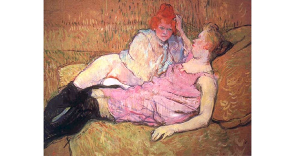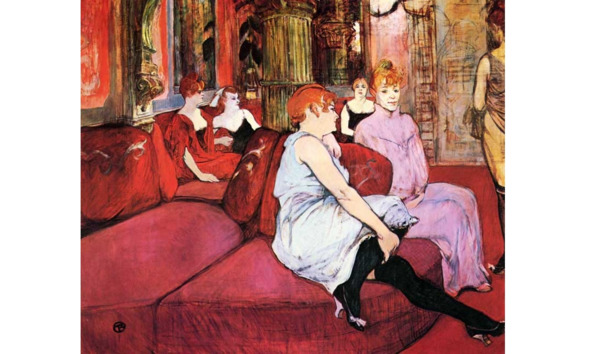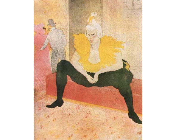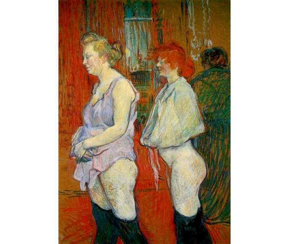 У него есть две работы, прямо на холсте, без грунтовки. Нарисовано углем, а потом внутри есть и постель, и масло, и гуашь. Техника такая!, которой в те времена вообще никто не пользовался. Вот так он был раскрепощен в области изобразительных средств. Это был единственный, ко всему абсолютно свободный человек. Он был свободен. Где хочу там живу, что хочу то ношу, что хочу то пишу. На вас на всех наплюю и уйду в свой особняк. Какие бы не были его внутренние причины, он был свободен и в своей гениальной живописи, Лотрек брал невероятные цветовые аккорды и получалась изумительная красота. У него есть несколько невероятно замечательных работ такой гуляющей тетеньки. И все восхищены — она так танцует канкан. Ноги уродливые.