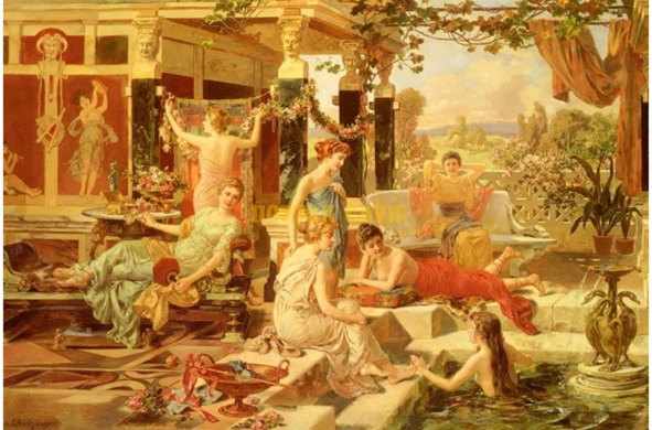 Рим же сделал нечто другое — он построил государство. Его современную интерпретацию. Он не занимался театром, потому что римляне только смотрели театр, в жизни вели себя театрально, но прежде всего они были людьми стадиона. Гении нации эллинов — это создание эллиинского массива, которым мы дышим до сих пор. Мы часть его. Римляне создали государство, они создали правовую культуру, республику, как она есть и сейчас с Сенатом, создали Империю, как когда-то она и была. Они создали современные формы жизни, а искусство обслуживало все это. Но учтите, Рим оболгали. Они не были бездельниками, лентяями, пьяницами и обжорами. Как бы смогла нация бездельников выстроить такую культуру и такую Империю? Причем, в одном Риме! Только в этом городе перепись общественных зданий была начата еще при Августе Октавиане — отце Нерон и велась на протяжении двухсот лет. Она была завершена в первом веке новой эры. И что вы думаете? В Риме по этой переписи было 865 общественных бань. Вдумайтесь в цифры. Я называю статистику. Есть такая наука. А что они делали в этих банях? Мылись? Нет, они мылись дома, потому что у них вода была проведена в дома. Поезжайте в Помпеи, у вас клозетов и сортиров сейчас таких нет, какие были у них! Только мечтать можно. Но, мылись они дома, а баня — это был образ жизни. Какой идиот будет ходить в баню на один день? Неделька! Мы приходим: с поварами, с манускриптами, с разговорами. Всем рекомендую Анатоль Франса «На белом камне». Он описывает римские бани. О банях писал Лукомский — почитайте — обрыдаетесь. Так и называется «Римские бани». Я не могу вам читать, я могу только посоветовать.