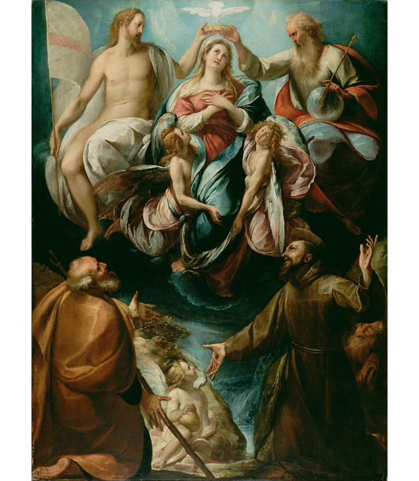 А какое определение дали наши «враги»? Они сказали Богородица Царица Небесная. Дамы, вам потому не дарят букеты, потому что вы не Царицы Небесные. А тем дарят. Как только они стали писать иконы, их Богородица сидит на них со своим младенцем, спокойная, в ус не дует, держит своего очень квадратного и толстого ребеночка на коленях и эти рядом с букетами стоят. Но самое главное то, что они создали ради этого тезиса иконографический канон, которого в России никогда не было. Называется «Коронация Божьей Матери». И она на нем такая беленькая, чистая, молоденькая, а Он держит корону у нее над головой. Изначально культура формирует ментальность типа Прекрасной дамы. Не эпоха Возрождения, а начиная с 9-го века, хотя развод состоялся в 11-ом веке. Культ Прекрасной дамы — вот главная духовная революция в Европе. Свобода изображения к тексту и культ Прекрасной дамы. Что это за культ? Рыцари. То есть в ней есть момент женского начала — это не ее подтягивают к архетипу абсолютного целительства, а она воплощается в женской образ. А любимый образ какой? Грехопадение. Это совершенно другое сознание.