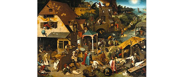 У Брейгеля утонченное чувство правды деталей. Как у Феллини. У того было такое же чувство деталей. Недавно показывали «Амаркорд». Много вырезали, но глаз оторвать нельзя. До чего он точен в деталях. И так же у Брейгеля. И в одежде, и в еде, и в людях. Для изучения культуры времени. Он задолго до Фрейда и Юнга исследовал сознание и объяснил, что вся тайна сидит внутри. У него есть все: и вес предметов и вещей, и повторение времени.