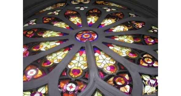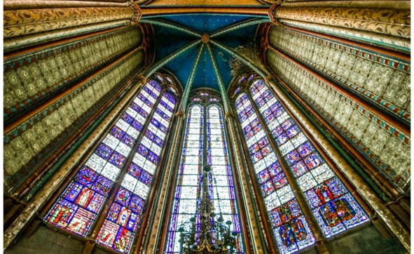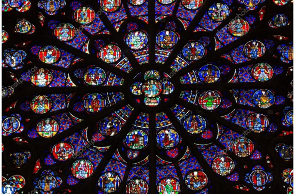 Стен нет нигде, они заменены витражным стеклом. Почему? Что такое витражное стекло? Стекло пропускает цветной свет, и в соборе всегда стоит радуга. И этот эффект называют «эфирным телом». Двойник физического тела. Душа, Дух, Тело и эфирное тело. Четыре элемента собора. И это проходит через цветные витражи, которые несут на себе все, что можно изобразить по закону 8-го Вселенского собора.
