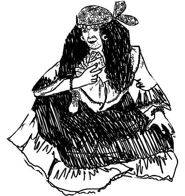 — Когда дедушка молодым был, любил он наряжаться на праздниках! Я ему даже наряды шила! И парик у него был! Однажды пригласили нас на свадьбу… А он просит: пошей мне платье цыганское и платок найди, да так сделай, чтобы никто не узнал.