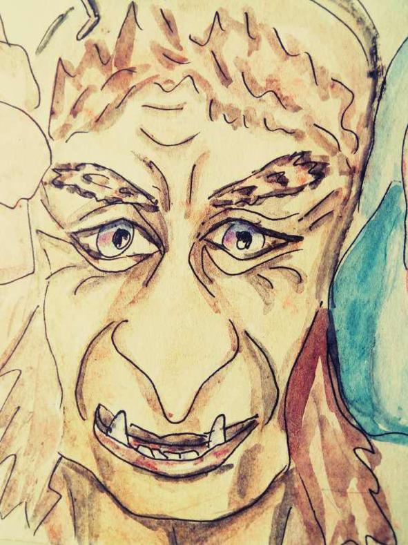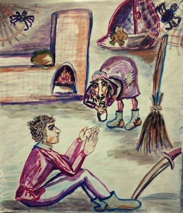 Илья вошел в избу. Там стояли старые-пристарые стулья, стол, сундук. Старуха встретила его, согнувшись, и сухая как метелка. Глаза её черной дырой скрывались под седыми, когда-то черными нависшими бровями. Длинный горбатый нос крючком свешивался до подбородку, закрывая почти поллица, а изо рта торчали два оставшихся желтых клыка с коричневым налётом. И там, где когда-то были зубы, остались у неё одни губы. Ее седые космы неряшливо выбивались из-под линялого платка. Она скривила рот и прохрипела сипло: