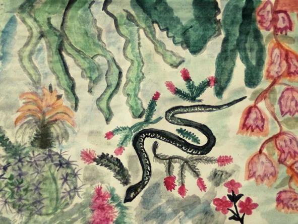 Илья уже хотел обернуться, даже не помнил наказа Бабы Яги: «ни в коем случае не оборачивайся!» Но вдруг зеленая юркая змейка с ветки стрелой мтнуась ему на плчо и обвила его шею и зашипела бабкиным голосом ему на ушко: