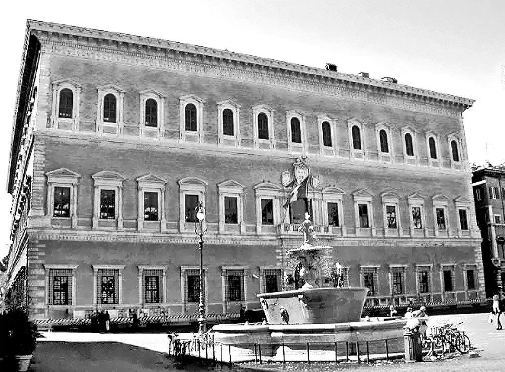 Рис. 6. Дворец Фарнезе (Palazzo Farnese) в Риме. Якобы середина XVI века. Сегодня во дворце размещается посольство Франции и постороннему попасть туда нельзя. Фотография взята из интернета.