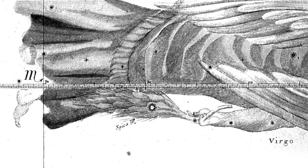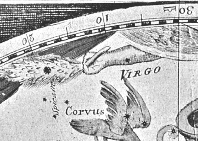 Рис. 27. Звезда Колос Девы (альфа Девы, Спика) изображена в виде пучка колосьев на старинной карте звездного неба. Взято из [1160], с. 321.