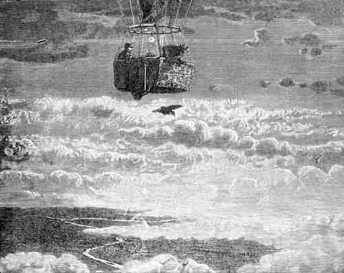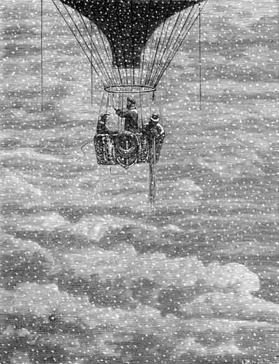 But we shall penetrate space no longer in an upward direction. It is time we were going back to the world. We are all very cold, and the eyes and ears of some of us are becoming painful. More than that, our balloon is getting too large. The gas within it is expanding, on account of the rarity of the air.