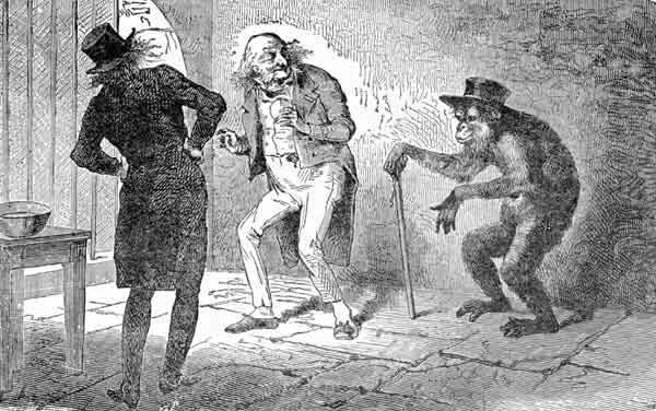 This delusion is very simple indeed, and is produced by placing a card-figure on a screen, and throwing shadows from this upon another screen, by means of several lights, held by assistants. Thus each light throws its own shadow, and if the candles are moved up and down, and about, the shadows will dance, jump over each other, and do all sorts of wonderful things. Robertson, and other public exhibitors, had quite complicated arrangements of this kind, but they all acted on the same principle. But all of those who exhibit to the public the freaks of light are not as honest as Mr. Robertson. You may have heard of Nostradamus, who also lived in Paris, but long before Robertson, and who pretended to be a magician. Among other things, he asserted that he could show people pictures of their future husbands or wives. Marie de Medicis, a celebrated princess of the time, came to him on this sensible errand, and he, being very anxious to please her, showed her, in a looking-glass, the reflected image of Henry of Navarre, sitting upon the throne of France. This, of course, astonished the princess very much, but it need not astonish us, if we carefully examine the picture of that conjuring scene.