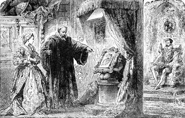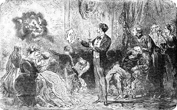 The mirror into which the lady was to look, was in a room adjoining that in which Henry was sitting on the throne. It was placed at such an angle that her face would not be reflected in it, but an aperture in the wall allowed the figure of Henry to be reflected from a looking-glass, hung near the ceiling, down upon the "magic" mirror. So, of course, she saw his picture there, and believed entirely in the old humbug, Nostradamus.
