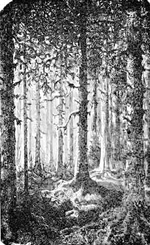 Here are ferns as large as trees—great masses of flowers that seem as if a whole garden had been emptied down before us—vast wildernesses of green, which we know extend for miles and miles, and which, although apparently so thick and impenetrable, are full of all kinds of life, vegetable and animal. The trees are enormous, but many of them are so covered with vines and creepers that we can scarcely distinguish the massive trunks and luxuriant foliage. Every color is here, rich green, royal purple, red, yellow, lilac, brown, and gray. The vines, which overrun everything, are filled with gorgeous flowers, and hang from the branches in the most graceful forms. Monkeys chatter among the trees, beautiful parrots fly from limb to limb, butterflies of the most gorgeous hues flutter about the grass-tops and the leaves near the ground, and on every log and trunk are myriads of insects, lizards and little living things of endless varieties, all strange and wonderful to us.
