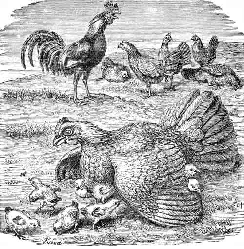 And there is no doubt but that these are among the very best feathered friends we have. Those hens are liberal with their eggs, and those little chickens that are running around like two-legged puff-balls, are so willing to grow up and be broiled and roasted and stewed, that it would now be almost impossible for us to do without them. Eggs seem to come into use on so many occasions that, if there was to be an egg-famine, it would make itself felt in every family in the land. Not only would we miss them when boiled, fried, and cooked in omelets for breakfast; not only without them would ham seem lonely, puddings and sponge-cakes go into decline, and pound-cake utterly die, but the arts and manufactures of the whole country would feel the deprivation. Merely in the photographic business hundreds of thousands of eggs are needed every year, from which to procure the albumen used in the preparation of photographic paper.