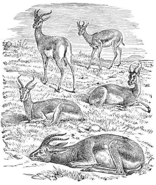 He dreamed that he saw on the grass beneath the rock where he was lying five fat young deer. Three of them were sisters, and the other two were cousins. They were discussing the propriety of taking a nap on the grass by the river-bank, and one of them had already stretched herself out. "Now," thought the Jaguar in his dream, "shall I wait until they all go to sleep, and then pounce down softly and kill them all, or shall I spring on that one on the ground and make sure of a good supper at any rate?" While he was thus deliberating in his mind which it would be best for him to do, the oldest cousin cocked up her ears as if she heard something, and just as the Jaguar was going to make a big spring and get one out of the family before they took to their heels, he woke up!