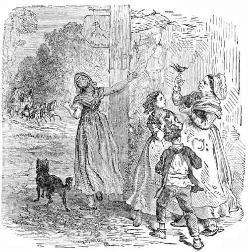 There are some birds, however, no bigger than canaries, which seem to have an attachment for their masters and mistresses, and which do not need the restraint of a cage. There was once a gold-finch which belonged to a gentleman who lived in a town in Picardy, France, but who was often obliged to go to Paris, where he also had apartments. Whenever he was obliged to go to the great city, his gold-finch would fly on ahead of him, and, arriving there some time in advance of the carriage, the servants would know that their master was coming, in time to have the rooms ready for him. And when the gentleman drove up to the door he would generally see his little gold-finch sitting on the finger of a cook or a chamber-maid, and twittering away as if he was endeavoring to inform the good people of all the incidents of the journey.
