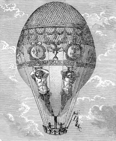 There were other balloons devised by the early aëronauts, which were still stranger than that one which arose from Dijon. The Minerva, the picture of which you can examine at your leisure, was invented by a Mr. Robertson, in the beginning of this century. He wished to make a grand aerial voyage of several months, with a company of about sixty persons, and therefore he had to have a very large balloon. To procure this he desired the co-operation of the scientific men throughout Europe, and sent plans and descriptions of his projected balloon to all the learned societies.