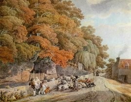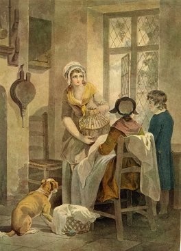 Francis Wheatley, R.A., was a topographical artist, but is better known as a painter of genre subjects, especially by the engravings after “The Cries of London.” Preparing for Market (Plate VIII) is a good example of his latter work, which was somewhat insipid.